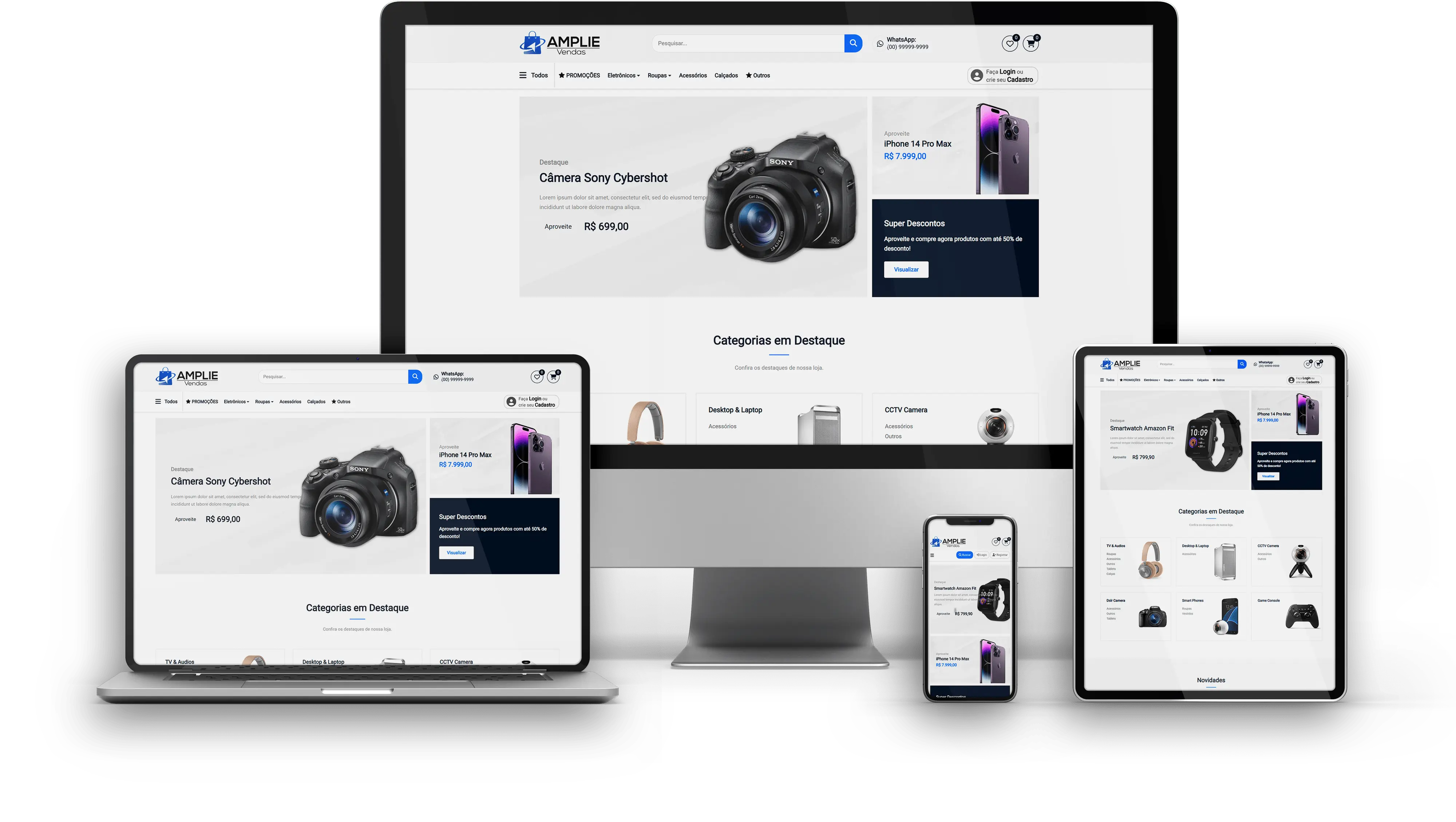 Com a Amplie Vendas, você tem uma plataforma de e-commerce que evolui junto com seu negócio. Atualizações automáticas, tecnologia de ponta e um sistema preparado para quem quer vender mais e melhor no mercado digital. Além disso, você terá uma plataforma que seja a cara do negócio, uma vez que você pode deixá-la do seu jeito e acessar de qualquer lugar!